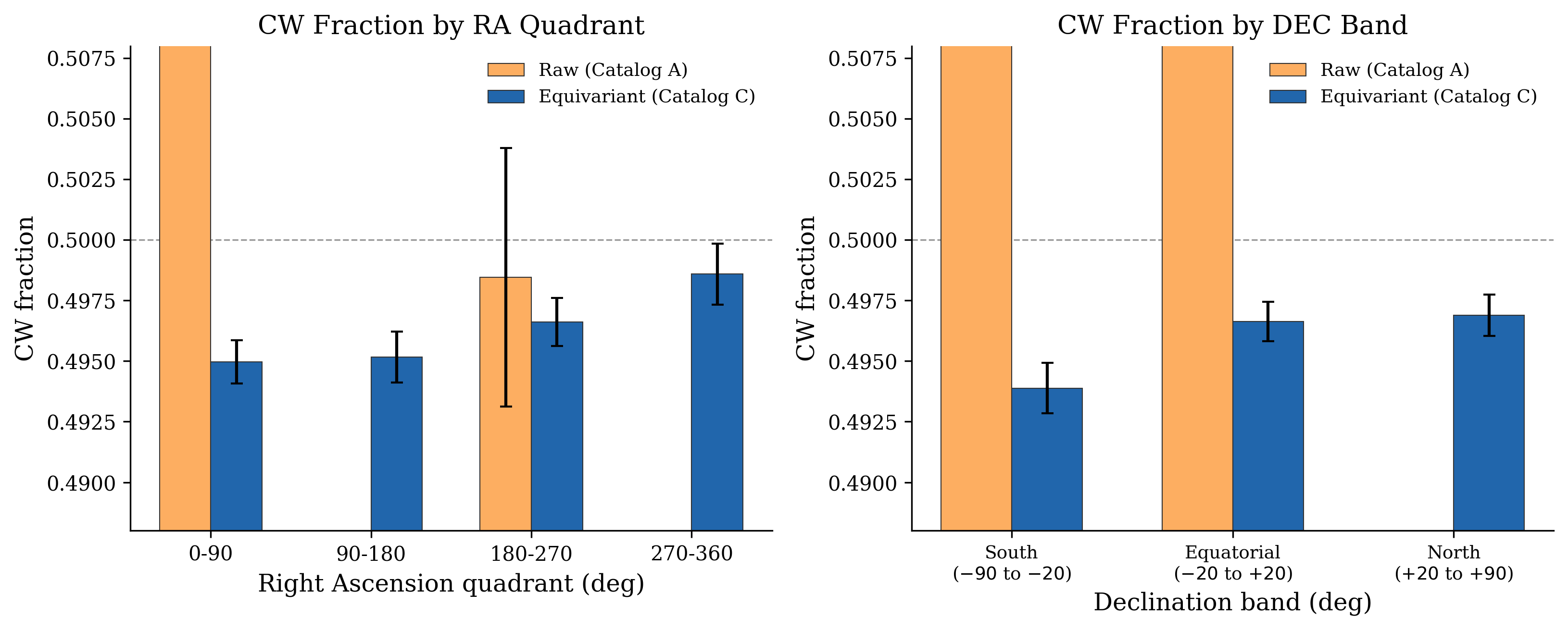 All regions within 0.62% of 50/50. Global equivariant CW/(CW+CCW) = 0.4974.
